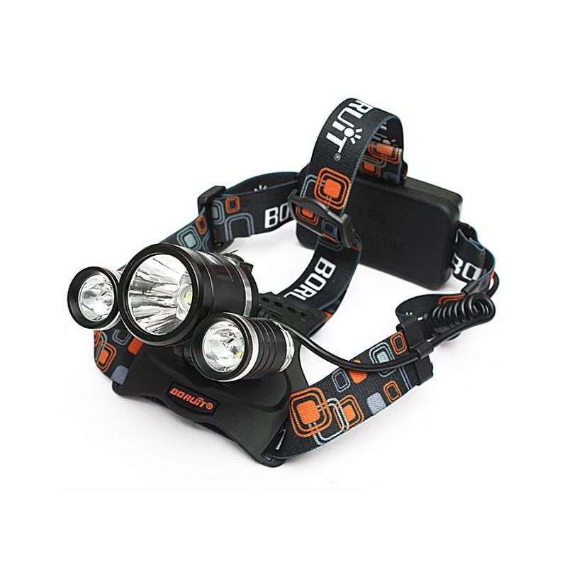 Cette lampe torche frontale LED XML T6 trilogie de 3x10W est dotée de 4 modes d'éclairage dont la fonction SOS stroboscope.